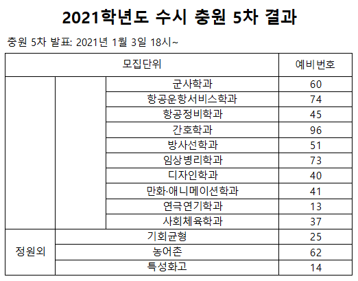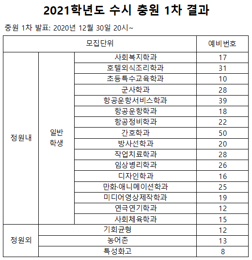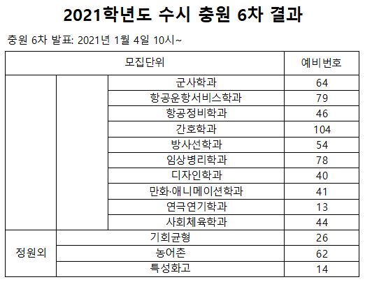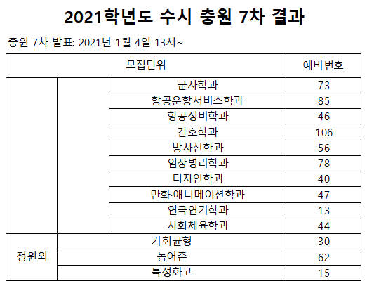 2021학년도 수시 충원 결과(1~7차)