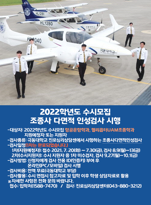 항공운항학과, 헬리콥터UAM조종학과 인성검사 안내
