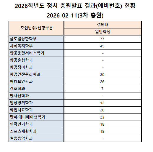 2026학년도 정시 모집 충원(예비번호) 결과 안