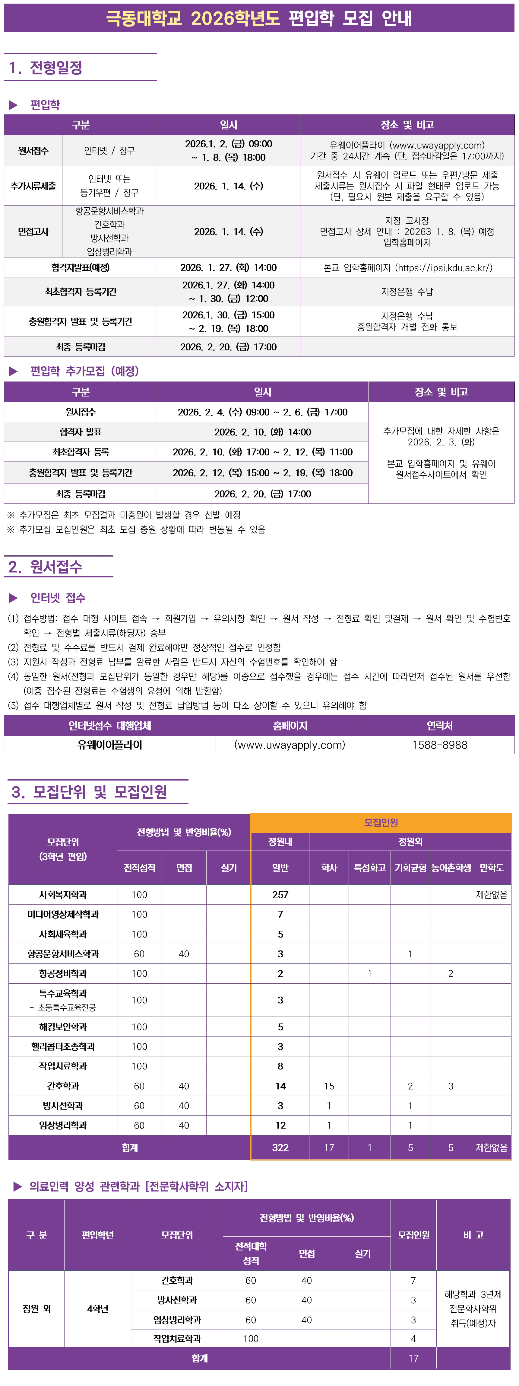 2026학년도 편입학 모집요강 및 원서 접수 안내