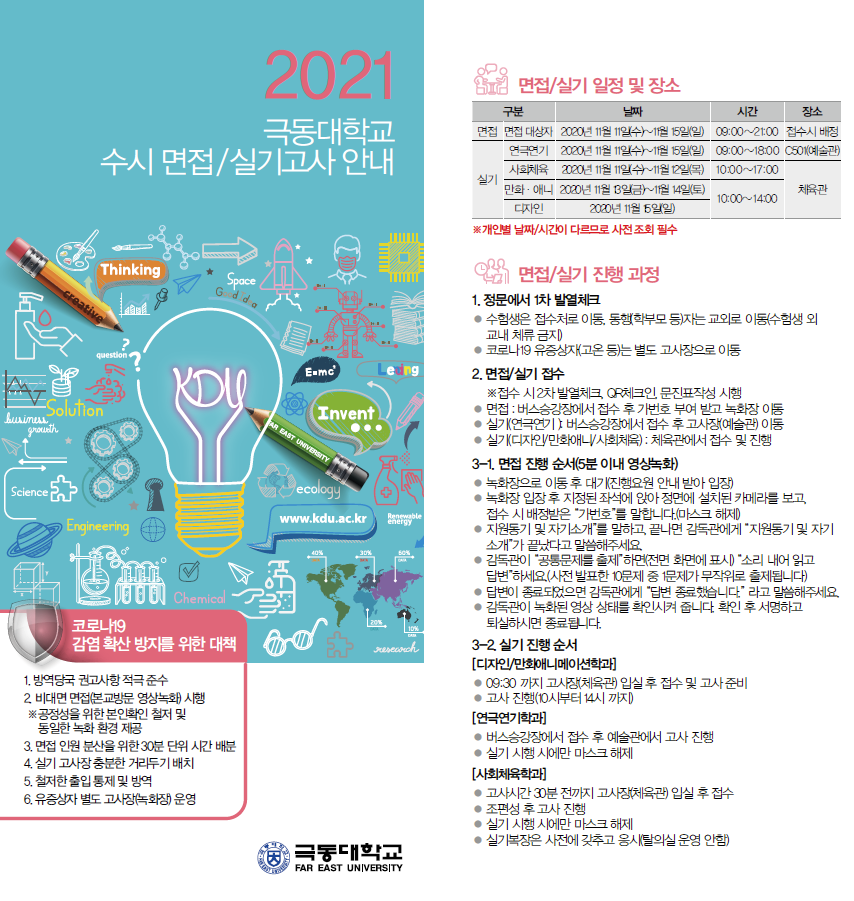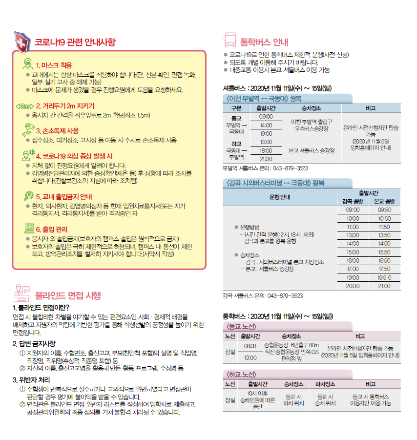 2021 수시 면접/실기고사 안내 게시글 상세보기 - 작성자, 조회수, 등록일, 첨부파일, 상세내용, 이전글, 다음글 제공