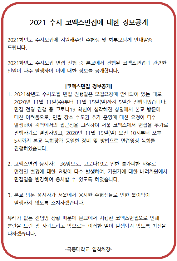 2021 수시 코엑스면접에 대한 정보공개