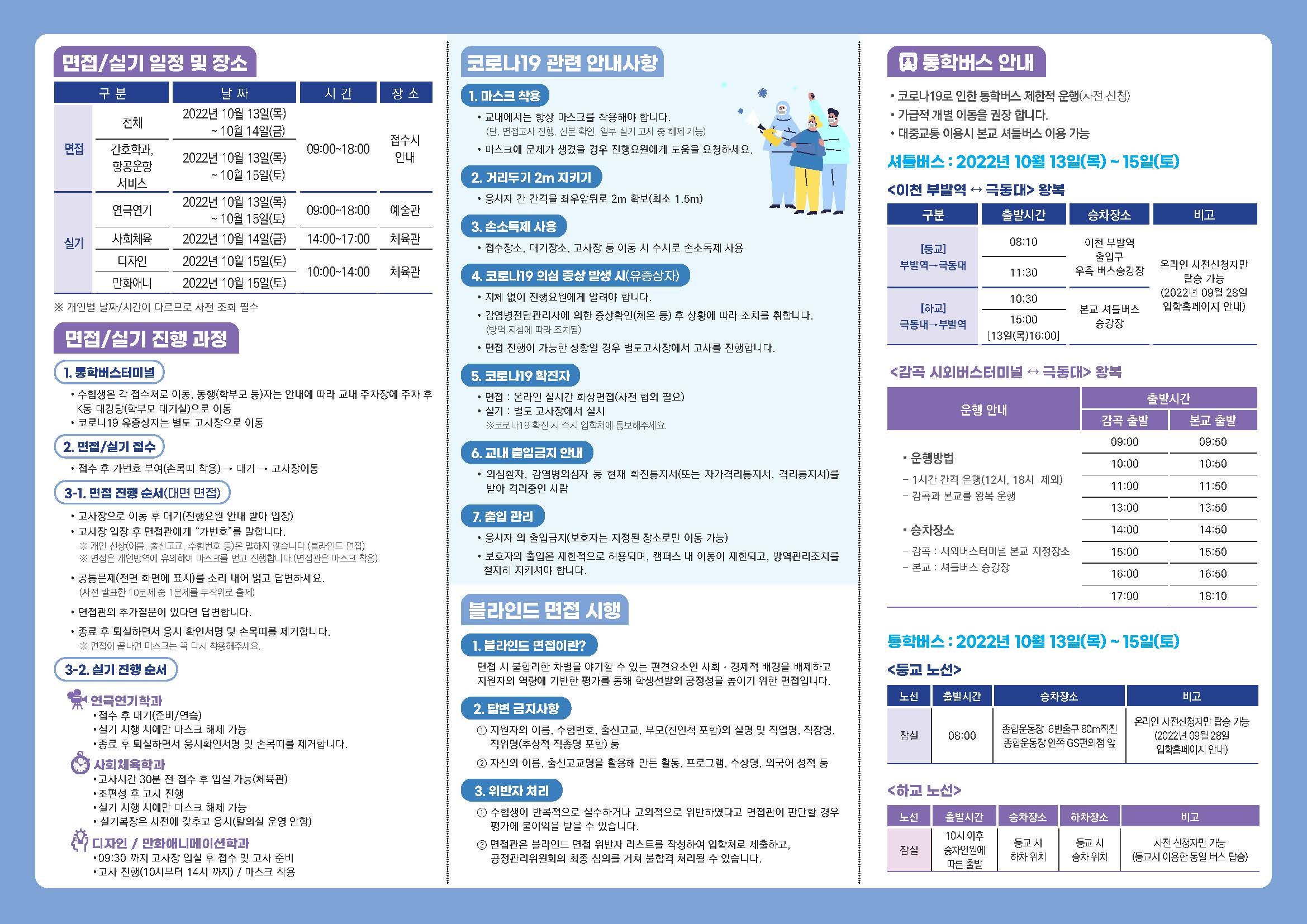 2023 수시 면접/실기고사 셔틀버스 운행표